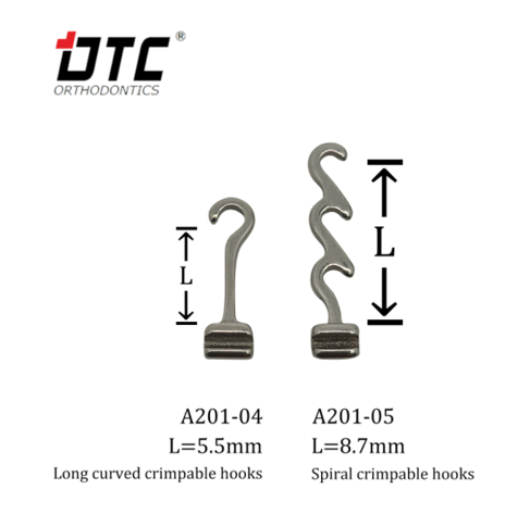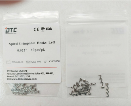 - Hook có thể được sử dụng cho nhiều chức năng khác nhau, chẳng hạn như móc để cố định, đóng khoảng nhổ răng, kéo thun liên hàm để chỉnh khớp. Sử dụng cho dây size .018″ đến .022″.